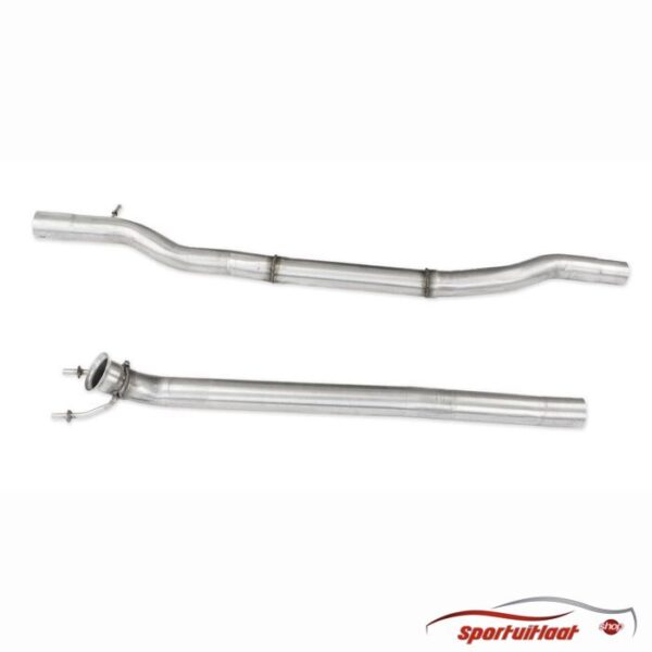 RVS SoundPipe passend voor de Mercedes A-Classe (W176) bouwjaar 2012-2015.Motoruitvoering:– A250 2.0 155kW 4MATICPassing: – NB: Deze SoundPipe is in volledig RVS uitgevoerd!.– Passend op de A250 (W176) 4WD.– Let op: For-Race-Purpose-Only, want betreft een demperloze middensectie van de uitlaat (zgn Muffler-delete), dus zonder goedkeuring.– Deze middendemper-vervangende soundpipe bevindt zich tussen de downpipe met katalysator en einddemper. Soundpipe past op originele aansluitpijpen van downpipe en op hier verkrijgbare Sportuitlaten. – Past ook op originele einddemper met speciale, hier verkrijgbare adapter (vraag er naar !).