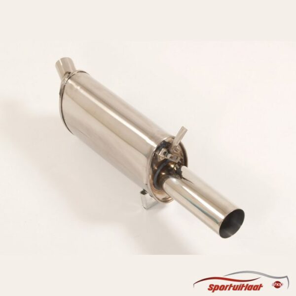 RVS Sportuitlaat passend voor de Opel CORSA A bouwjaar 1990-1993 met een 1x eindsierstuk in de uitvoering 90mm rond-schuin. Zie (laatste) afbeelding eindsierstuk voor juiste uitvoering.