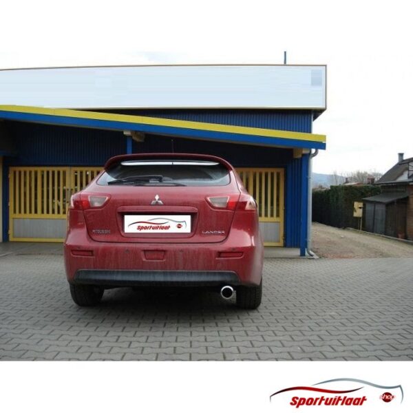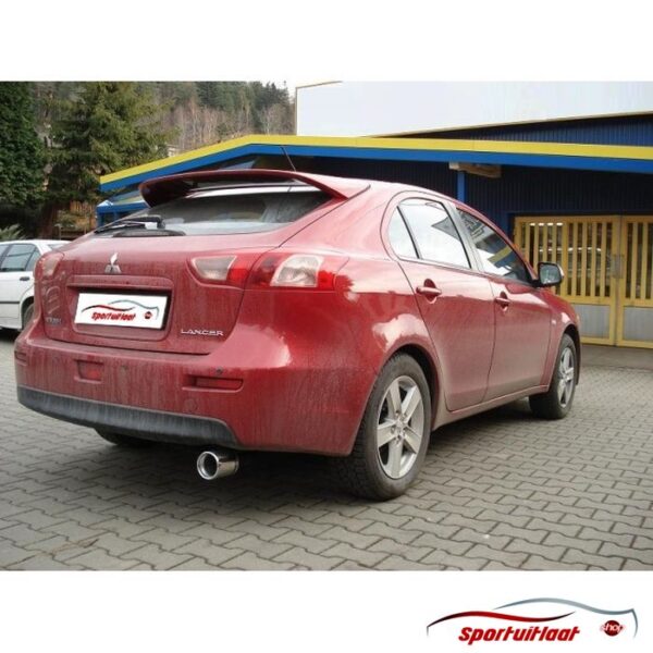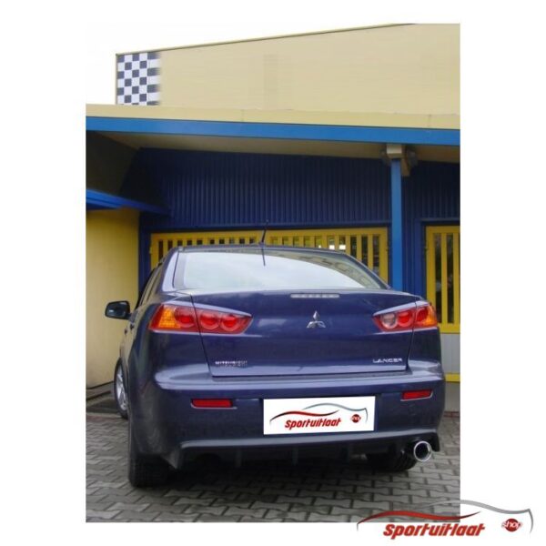 Sportuitlaat passend voor de Mitsubishi LANCER VIII bouwjaar 2007-2012 met een 1x eindsierstuk in de uitvoering 100mm rond. Zie (laatste) afbeelding eindsierstuk voor juiste uitvoering.