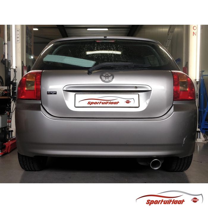 Sportuitlaat passend voor de Toyota COROLLA TS bouwjaar 2002-2007 met een 1x eindsierstuk in de uitvoering 90mm rond-schuin. Zie (laatste) afbeelding eindsierstuk voor juiste uitvoering.