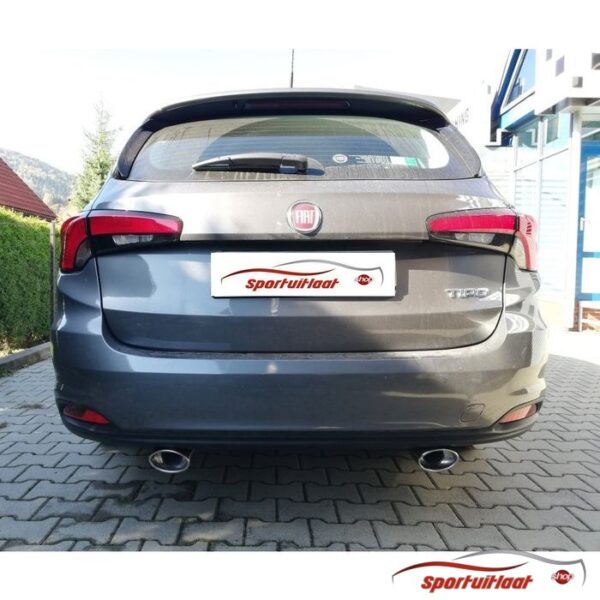 Sportuitlaat passend voor de Fiat Tipo Combi bouwjaar 2016-2019 met een duplex 2x eindsierstuk in de uitvoering 120x80mm ovaal-schuin. Zie (laatste) afbeelding eindsierstuk voor juiste uitvoering.