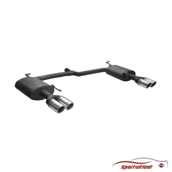 Sportuitlaat passend voor de Audi A4 (8K) bouwjaar 2008-2015 met een duplex 4x eindsierstuk in de uitvoering 70mm rond-schuin. Zie (laatste) afbeelding eindsierstuk voor juiste uitvoering.